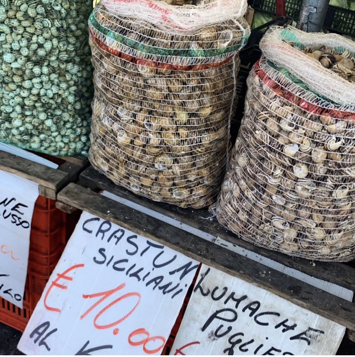 The funny thing about food, or particularly food in Italy, is that once you learn something previously unknown to you, you start seeing it everywhere. In the supermarket, which I hardly ever went to, I saw netted bags of snails in the chiller cabinets. On my next visit to the market, where I went all the time for my groceries, I saw huge bags of them, the nonnas scooping them out into small bags, like pic and mix. I had no idea how they would cook them, and I didn’t think we would cook them at home, though Stephen really wanted to - but then he ate brain and all kinds of stuff.